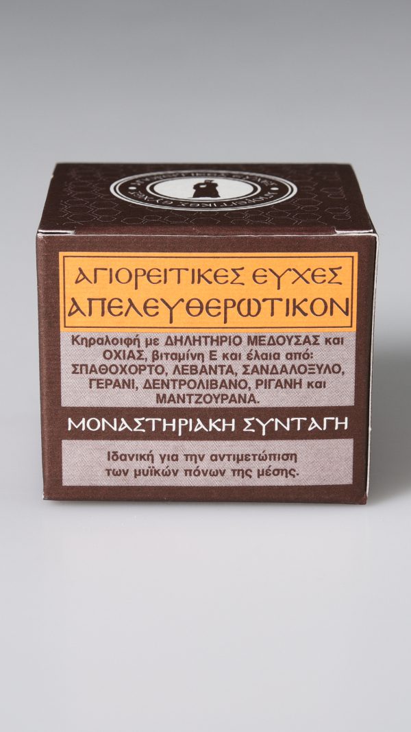Σε αγαστή συνεργασία με Ελληνορθόδοξους Μοναχούς παρασκευάστηκε από βότανα αυτή η κηραλοιφή, της οποίας βασικά συστατικά, μεταξύ άλλων, είναι το δηλητήριο οχιάς, το δηλητήριο μέλισσας, η αχιλλέα, η άρνικα και η ρίγανη.